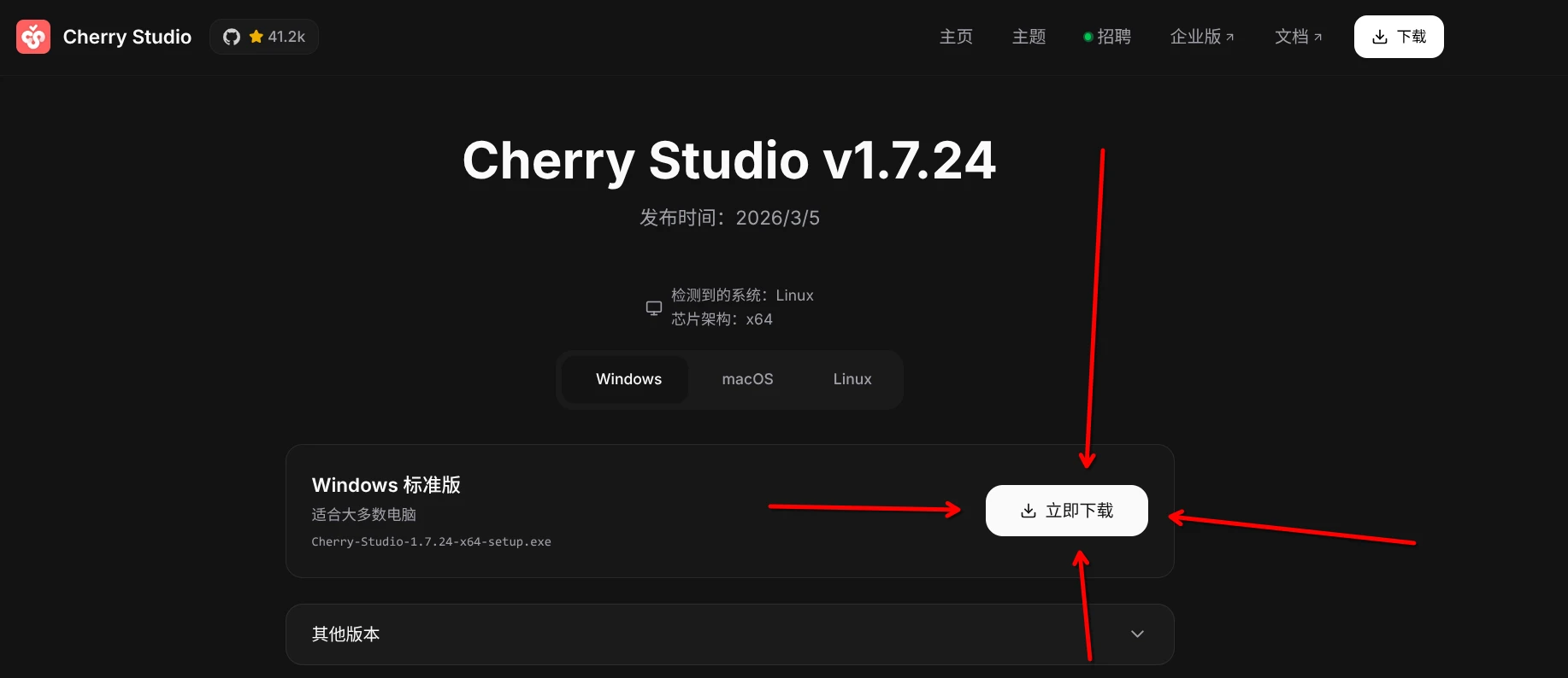 Cherry-Studio 的官方就久经考验了一点,还能提供夸克网盘下载。